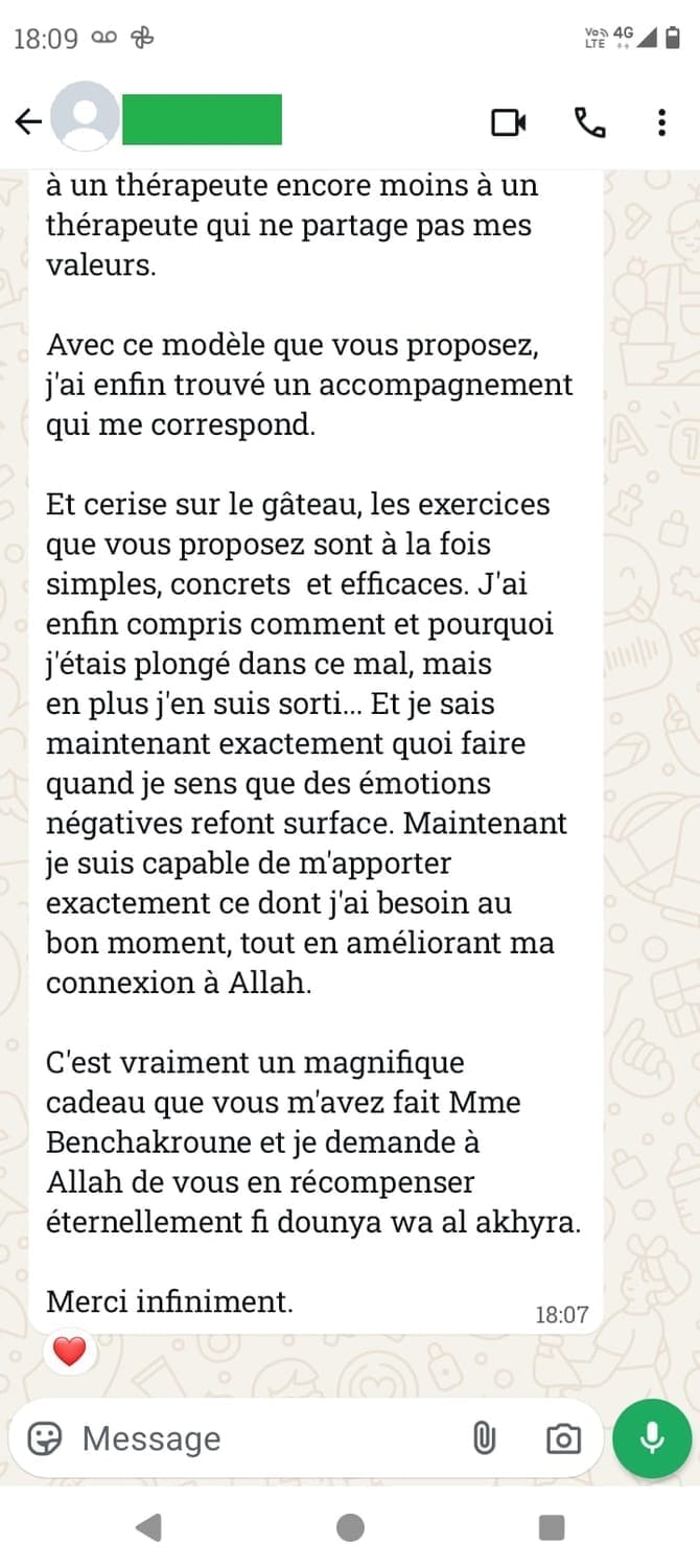 Elle a été conçue PAR une praticienne musulmane engagée, POUR celles et ceux qui veulent se sentir pleinement compris dans leur cheminement psycho-émotionnel… et spirituel.